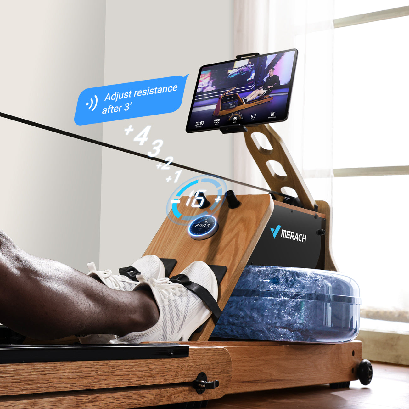 When paired with the MERACH APP training courses, the rowing machine can adjust resistance to follow workout cues. The system provides prompts before changes so you can align your rowing effort smoothly.